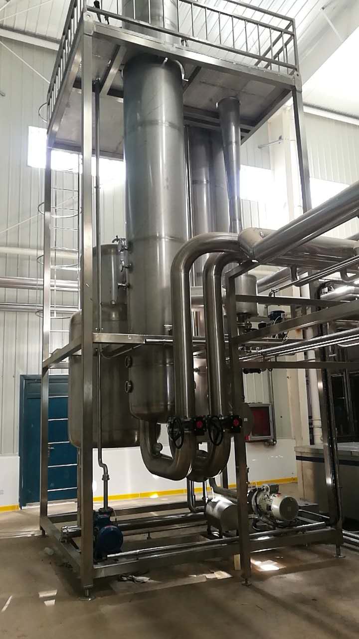 本套設備主要用于提高鮮奶干物質含量,并可使牛奶脫膻,為了降低蒸發溫度,控制蛋白變化,鮮奶在真空狀態下瞬間蒸發,不破壞牛奶任何成分及添加物質。整套設備操作簡單,運行平穩,可實現就地清洗。 自控操作系統由so密度儀測定出料濃度并輸 出信號,通過PILC處理后反饋到蒸汽調節閥,調整蒸汽進量,從而控制濃度